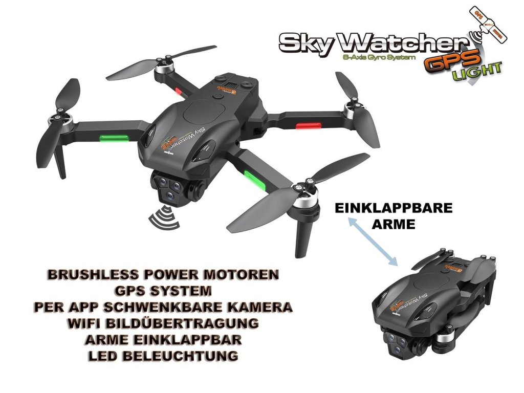 SkyWatcher GPS Light je více než jen dron. Je to váš nový společník na dobrodružství, který vám otevře nové perspektivy a umožní vám vidět svět zcela novým způsobem. Nečekejte, až vám obloha preklouzne mezi prsty. Objednejte si svůj SkyWatcher ještě dnes a začněte objevovat krásy světa z výšky!